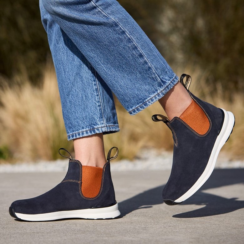la 2147 Combine Une Tige En Daim Bleu Marine, Un élastique Orange Et Des Coutures Contrastées Pour Un Style Qui Ne Sacrifie Pas Le Confort.